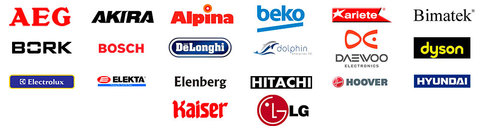 AEG, AKIRA, Alpina, Ariete, BEKO, Bimatek, Bork, Bosch , Daewoo Electronics, Delonghi, Delphin, Dyson, Electrolux, Elekta, Elenberg, Hitachi, HOOVER, Hyundai, Karcher, LG
